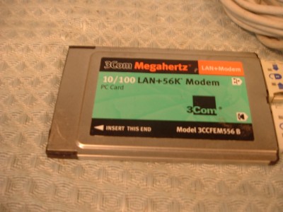 Up for sale is a 3Com Megaherts 10/100 Lan + 56K Modem Pcimia card for older laptops.I haven't tested it so i am selling it as is!I dont have any software or manuals for it.I think u can still get info from 3Com.