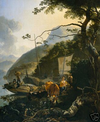 Boatmen Moored on the Shore of a Lake by Adam Pynacker, 1660, Old Masters Print