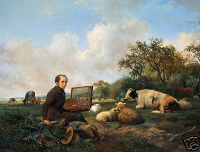 The Artist Painting a Cow in a Meadow Landscape by Hendrikus van de Sande Bakhuyzen, 1850, Old Masters Print