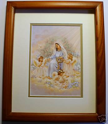 It is a 5 x 7 print double matted in an 8 x 10 wood frame. The outside mat is an eggshell or off white with a colored coordinated inner mat.