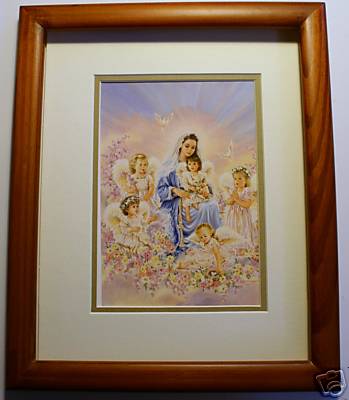 It is a 5 x 7 print double matted in an 8 x 10 wood frame. The outside mat is an eggshell or off white with a colored coordinated inner mat.