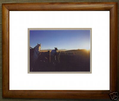 It is a 5 x 7 print double matted into an 8 x 10 all wood frame. The out side mat is an eggshell or off white with a color coordinated inner mat.