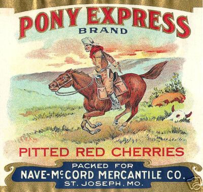Pony Express Brand Pitted Red Cherries Vintage Label Print