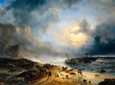 Shipwreck on a Rocky Coast by Wijnandus Johanne Joseph Nuyen, 1837, Old Masters Print