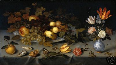Still Life with Fruit and Flowers by (Artist Unknown), 1620-21, Old Masters Print