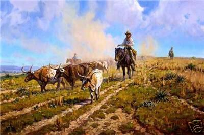 Martin Grelle lives with his family just a few miles from where he was born in Texas. Rich in beauty and history, the area has become a mecca for artists. It is one reason why this artist spent his whole life there. Grelle's work reaches far beyond his Texas home conveying the spirit, drama, beauty and vastness of the American West. He enjoys the Cowboy Artists of America's trail ride each year, and manages to spend some time occasionally working cattle with local friends. He is proud of the Native American part of his ancestry and studies diligently to portray their culture accurately and sensitvely.