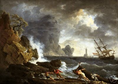 Stormachtige Zee Voor Een Italiaanse Haven by Claude-Joseph Vernet, 1745-50, Old Masters Print
