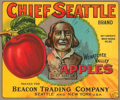 Vintage Crate Label, Chief Seattle Brand Wenatchee Valley Apples