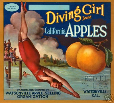 Vintage Crate Label, Diving Girl Brand California Apples