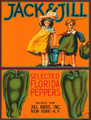 Vintage Crate Label, Jack & Jill Selected Florida Peppers