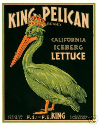 Vintage Crate Label, King Pelican California Iceberg Lettuce