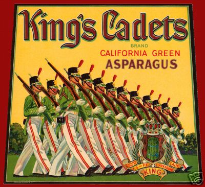 Vintage Crate Label, King's Cadets Brand California Green Asparagus