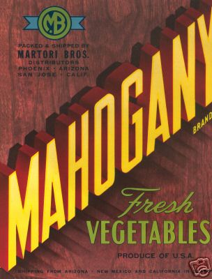 Vintage Crate Label, Mahogany Fresh Vegetables