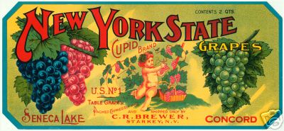 Vintage Crate Label, New York State Cupid Brand Grapes