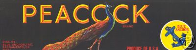 Vintage Crate Label, Peacock Brand - Blue Anchor