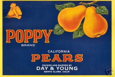 Vintage Crate Label, Poppy Brand California Pears