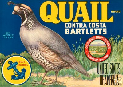 Vintage Crate Label, Quail Brand Contra Costa Bartletts