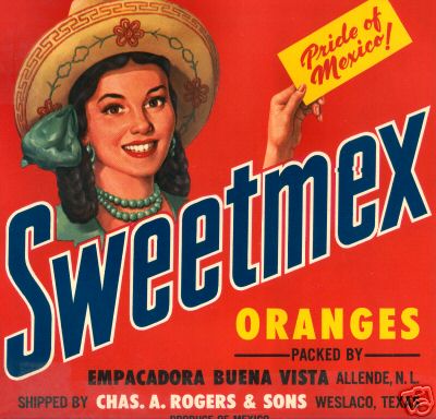 Vintage Crate Label, Sweetmex Oranges, Pride of Mexico