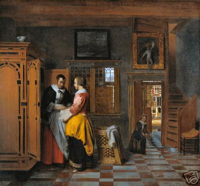 Interior with Women beside a Linen Chest by Pieter de Hooch, 1663, Old Masters Print