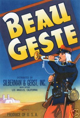 Vintage Crate Label, Beau Geste Produce, Los Angeles CA