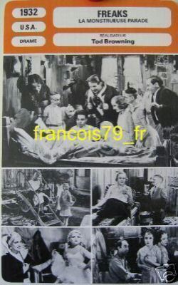 - LOOK! This is an ORIGINAL VINTAGE FRENCH CARD Created in the years 70's > 80's collect the old movies and also the new movies, 5x8 inches In MINT Condition of the movie FREAKS (1932) by Tod Browning with Wallace Ford, Leila Hyams, Olga Baclanova, Roscoe Ates, Henry Victor...