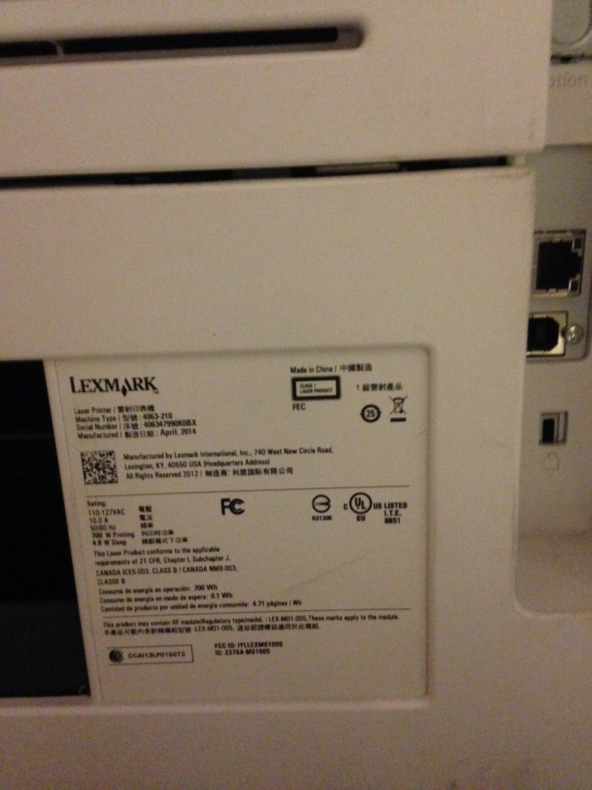 Lexmark MS810n USB Network Laser Printer