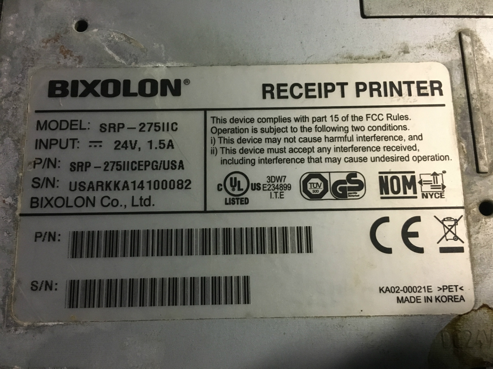 The item you are bidding on is a used, working SAMSUNG BIXOLON Black Receipt Printer SRP-275IIiCG POS printer. It comes with a ETHERNET NETWORK interface connection (see pic), & power supply/cord.
