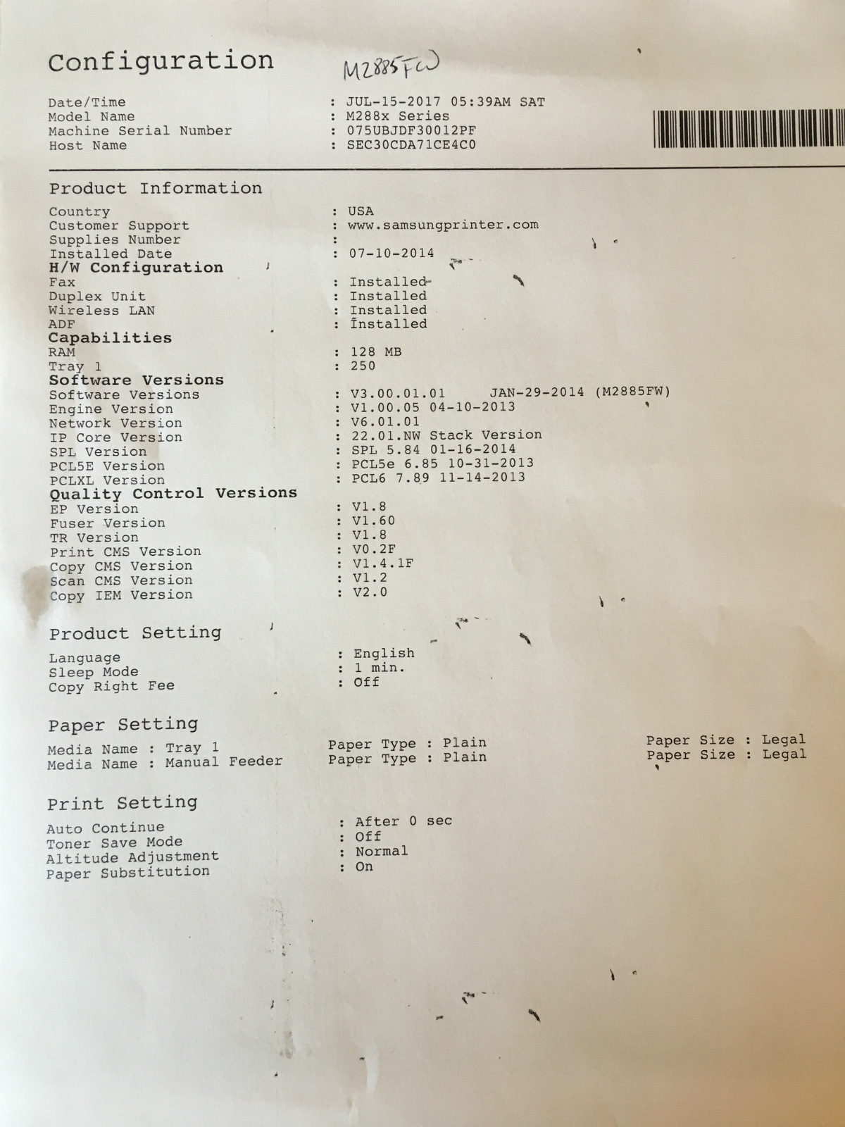 Samsung M2885FW USB Laser Printer complete - 864 pages!