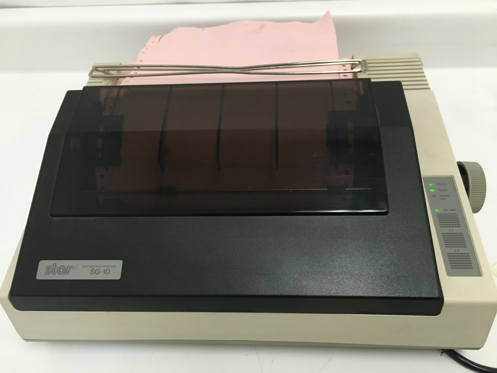 Star Micronics Vintage Dot-Matrix impact tractor-feed printer SG-10 Parallel Comes used, working with a Power cord, but need a new ribbon.