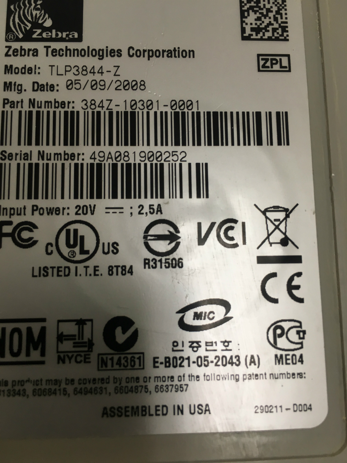 Zebra Eltron TLP 3844-z Thermal Barcode Label Printer 384z-10301-0001