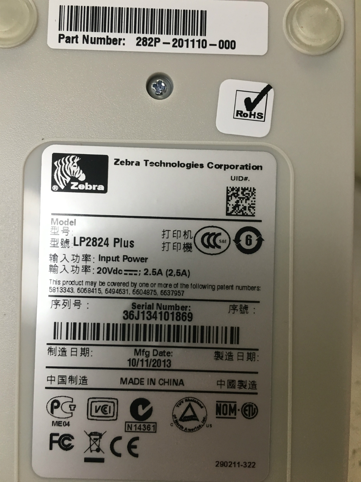 Zebra LP2824-Plus Thermal Barcode Label Printer 282P-201110-000