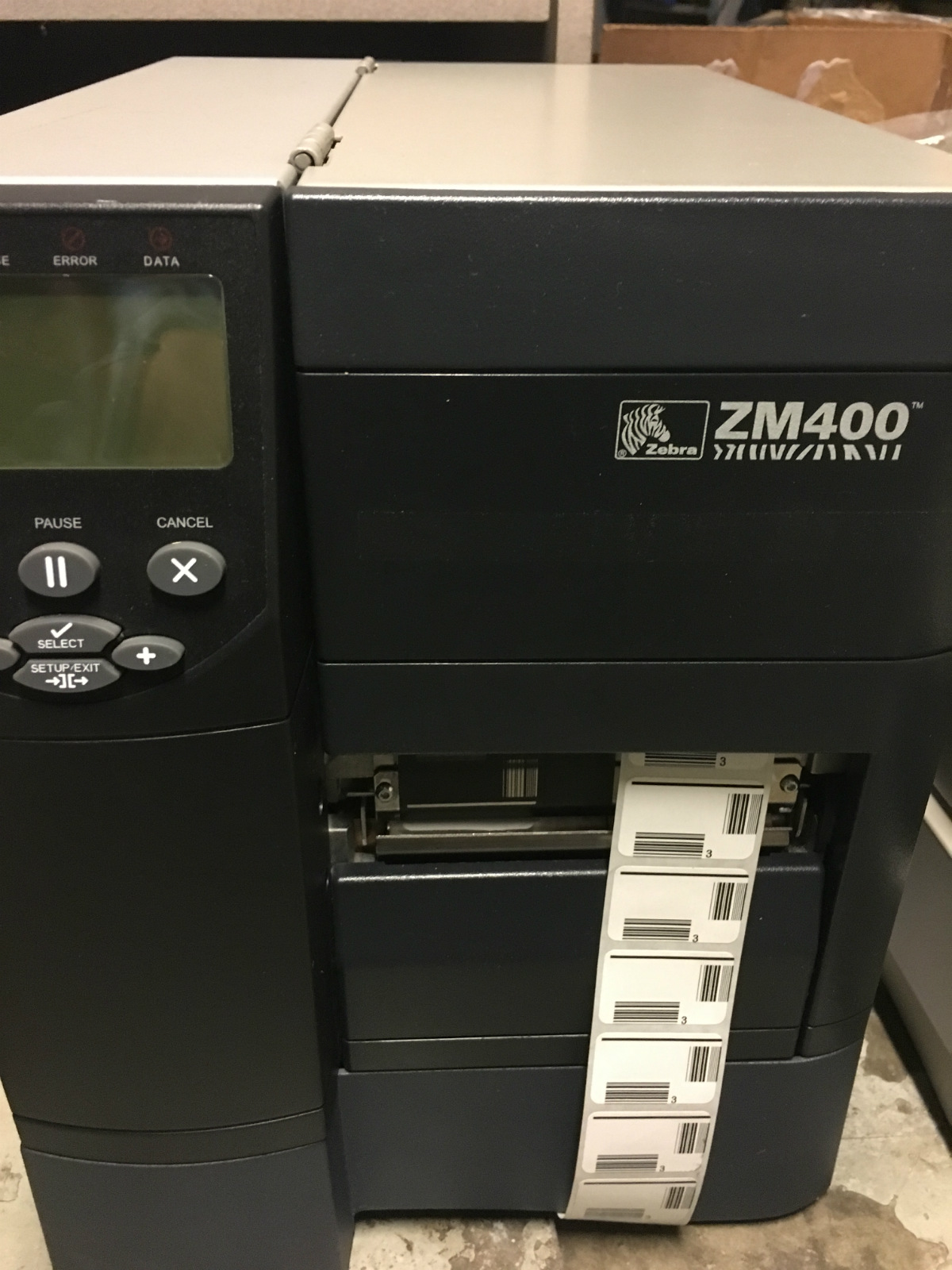 ZEBRA ZM400 ZM400-3001-0100T Thermal Barcode Label Printer This printer is in very good cosmetic condition and is guaranteed working. It comes as in the attached photos. I will include a power cable.