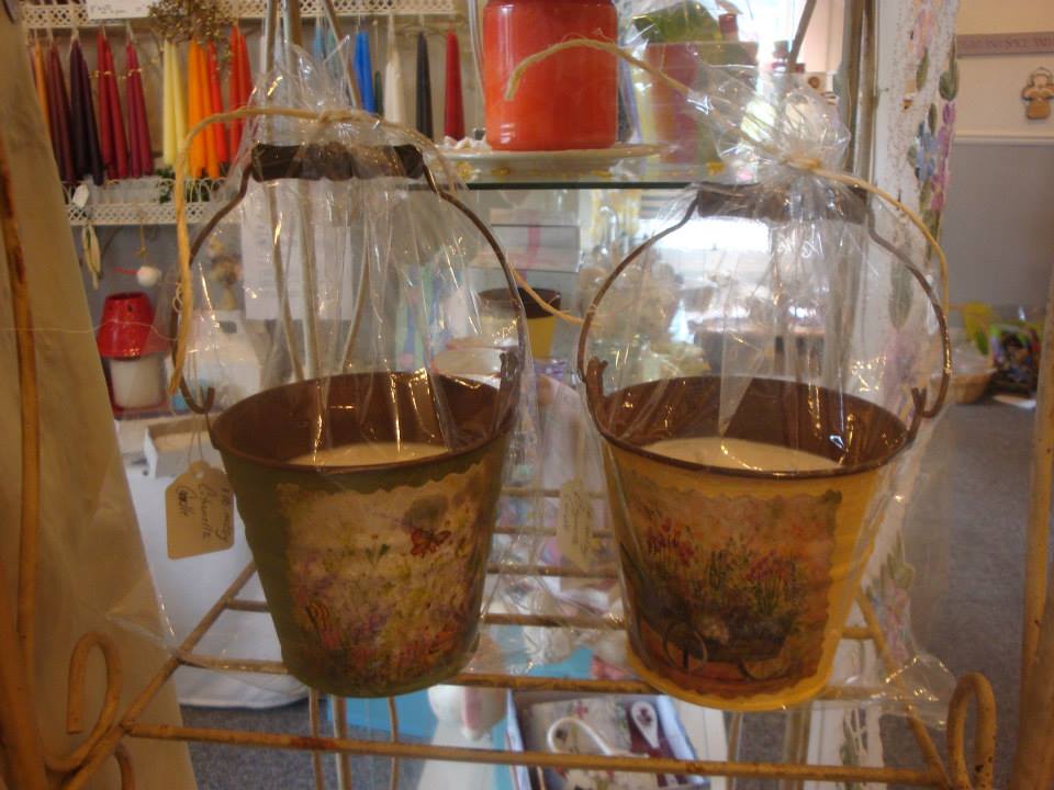Extra large 1lb 100% soy citronella essential oil candle in a reusable tin with a wooden handle. Refills available by special order.