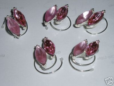 These are wonderful little hair twists, a remake of something I wore back in the sixties. They can be worn in short or long hair, but are perfect for upswept prom and bridal hairdos. They are simple to use (twist them to the left into the hair and out to the right), and very elegant to wear. When properly worn the wire should disappear and only the ornament will show in your hair. They all come in sets of six unless otherwise stated.