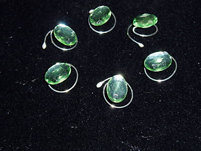You are bidding on 6 pieces of hair jewelry consisting of sparkling lime green oval shaped acrylic rhinestones. They give off a spectacular shine when light hits them. The hair swirls will look like they are floating in your hair. They are 14mm x 10mm in size. These have a dazzling shine and will sparkle in your hair. I guarantee it or your money back. The style pictured on the model is a crystal glass ab oval which you can find in another listing. If you would like more than one set please ask. These also come in red, emerald green, topaz, yellow, and amethyst. For other designs and colors please visit my eBay store. If you do not want to wait for the auction to end you may buy these in my store