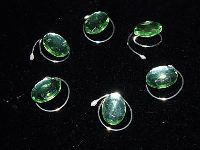 These are wonderful little hair twists, a remake of something I wore back in the sixties. They can be worn in short or long hair, but are perfect for upswept prom and bridal hairdos. They are simple to use (twist them to the left into the hair and out to the right), and very elegant to wear. When properly worn the wire should disappear and only the ornament will show in your hair. They all come in sets of six unless otherwise stated.