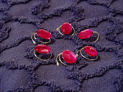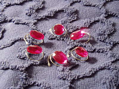 These are wonderful little hair twists, a remake of something I wore back in the sixties. They can be worn in short or long hair, but are perfect for upswept prom and bridal hairdos. They are simple to use (twist them to the left into the hair and out to the right), and very elegant to wear. When properly worn the wire should disappear and only the ornament will show in your hair. They all come in sets of six unless otherwise stated.