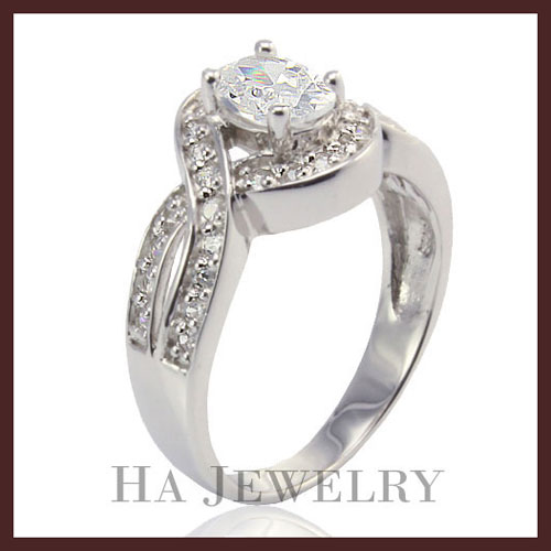 This beautiful Sterling silver ring features a 1.3 carat Oval-Cut cubic zirconia. This silver ring is stylish twist band with small 32 round brilliant cut stones. It is truly stunning and sparkling. We are sure you will love it.