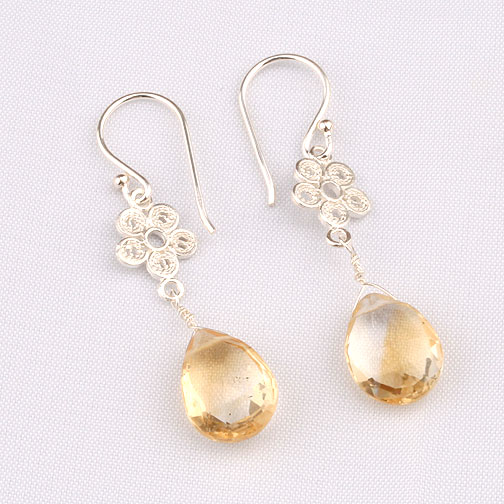 Natural Citrine Flower Dangle Drop Silver 925 Earrings