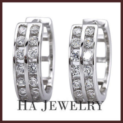 2.16ct Two Row Channel Set Silver Hoop Earrings