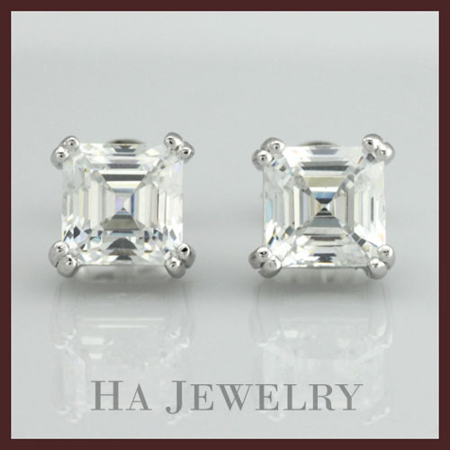 4.2Ct Brilliant Assher CZ 925 Silver Stud Post Earrings