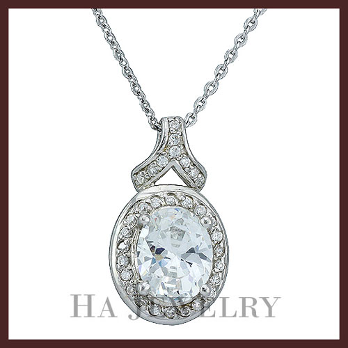 4.56ct Oval Cubic Zirconia 925 Silver Pendant Necklace