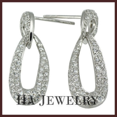 Lovely Oval Dangle CZ Sterling Silver 925 Earrings