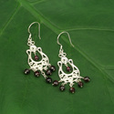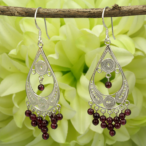 Red Garnet Thai-Art Chandelier Dangle Silver Earrings