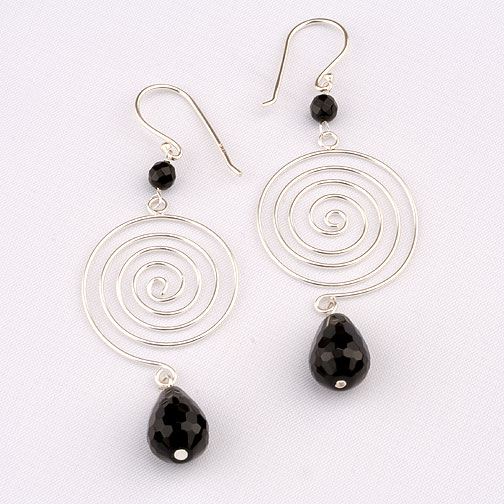 Natural Black Onyx Chandelier Dangle Silver Earrings