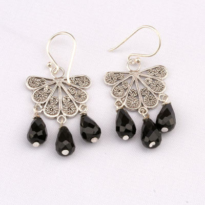 Stunning Black Onyx Thai-Art Filigree Silver EarringsPrice:  $21.99