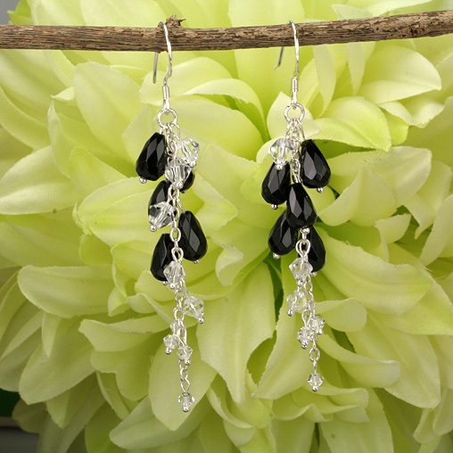 Stunning Natural Onyx Dangle Drop Silver Earrings New