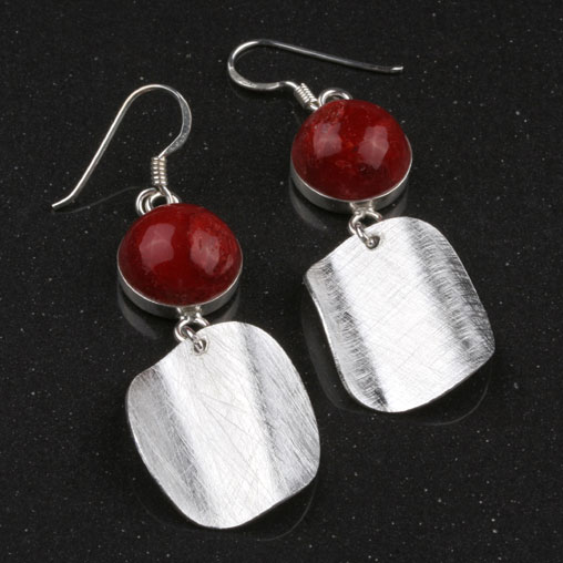 Nice Thai-Art Red Coral Sterling Silver Dangle Earrings