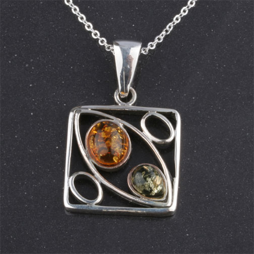 Sterling Silver 925 Green/Yellow Amber Pendant Necklace