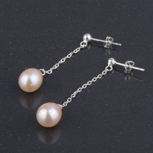 This is an Excellent earrings made from Natural Freshwater Pearl and sterling silver chain drop. We select High Quality & Perfectly color and natural shape make it more special on you. Not easy to find natural color so pretty and charming like this. DO NO